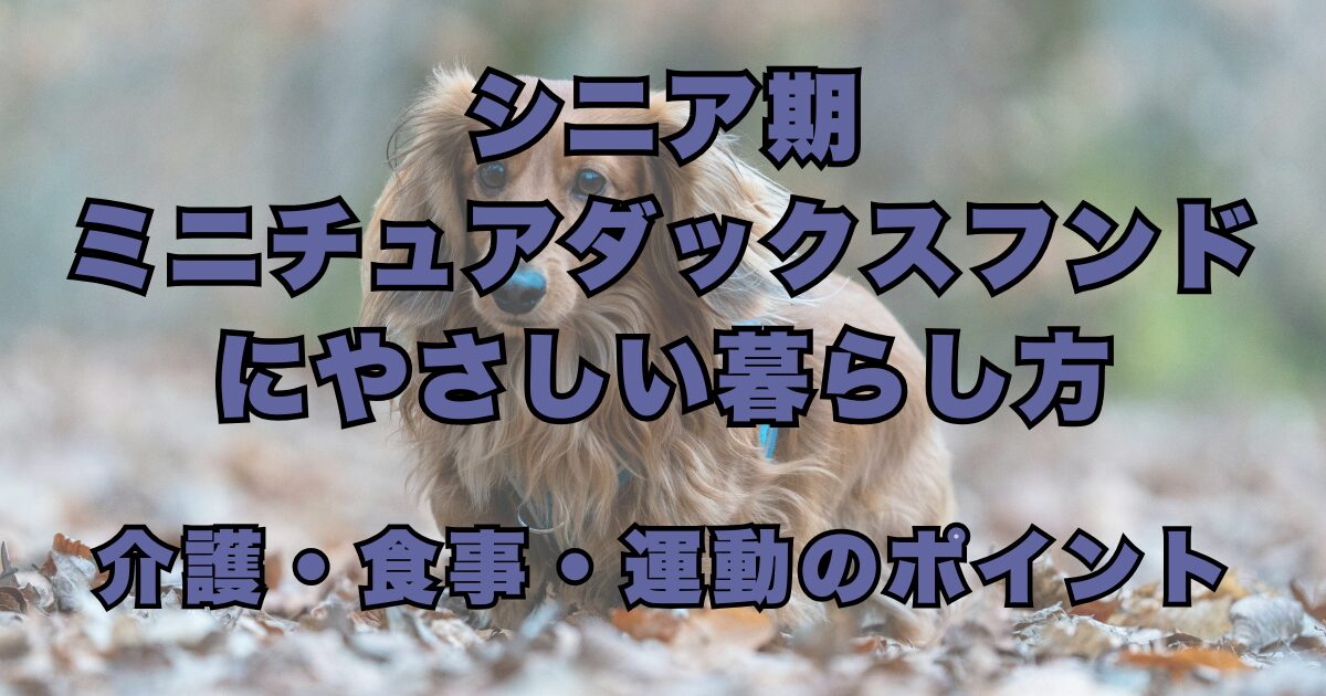 この記事では、シニア期のミニチュアダックスフンドと快適に過ごすために大切な「介護」「食事」「運動」の3つのポイントを中心に、飼い主ができるケアや日常の工夫について詳しく解説します。